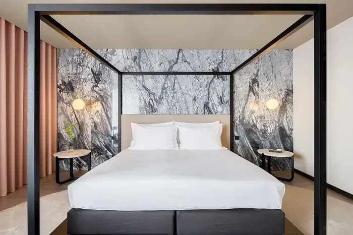 The Classic Double room, with a double bed*, combines comfort with tranquility. Each room has been created with functional details and offers all amenities (wardrobe, hairdryer, free toiletries). The room is air-conditioned, has a TV with local and international channels, a minibar and free Wi-Fi. You can have online access to newspapers and magazines available free of charge at our hotel through the Press Reader app. Room service available, with specific price and schedule. Free parking for reservations on our website. Nespresso coffee machine (4 capsules daily offer). Free access to our Wellness Center.